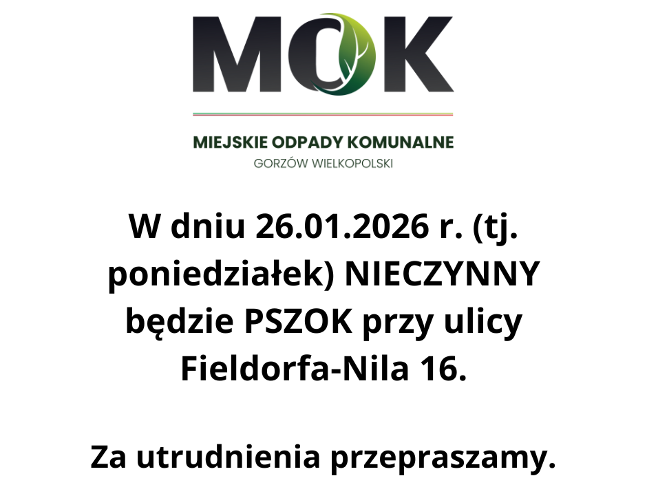Uprzejmie informujemy, że dnia 31.12.2025r. (tj. środa), Biuro Obsługi Klienta czynne będzie […]